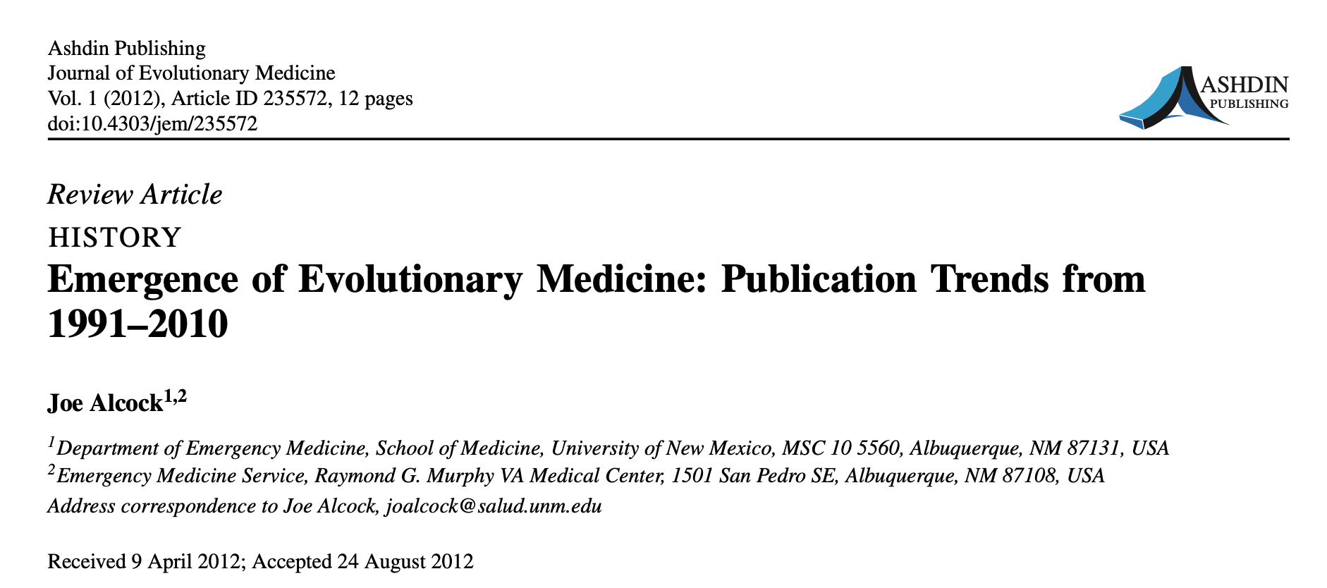 Emergence of Evolutionary Medicine: Publication Trends from 1991- 2010 was just published in the Journal of Evolutionary Medicine.