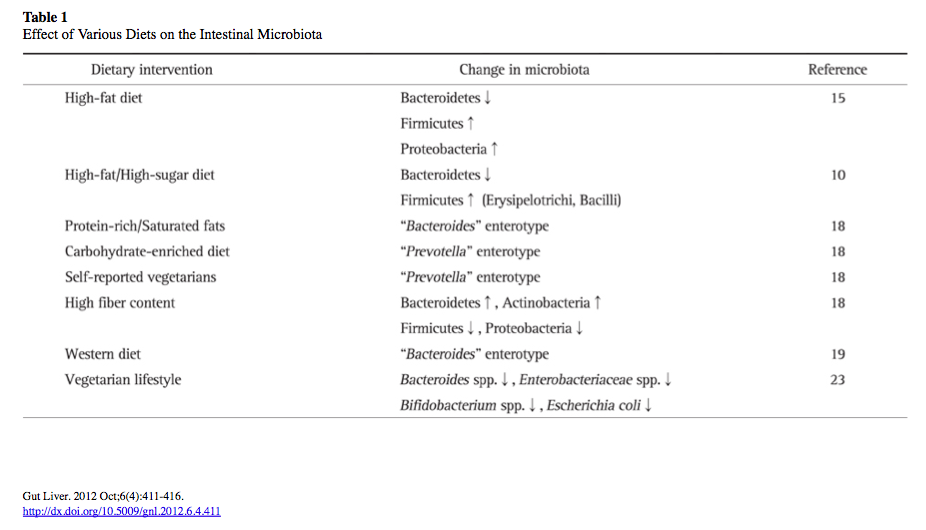 (Table 1 “Dietary Factors: Major Regulators of the Gut’s Microbiota” Moschen, Wieser & Tilg. Gut Liver. 2012 Oct;6(4):411-416.)
