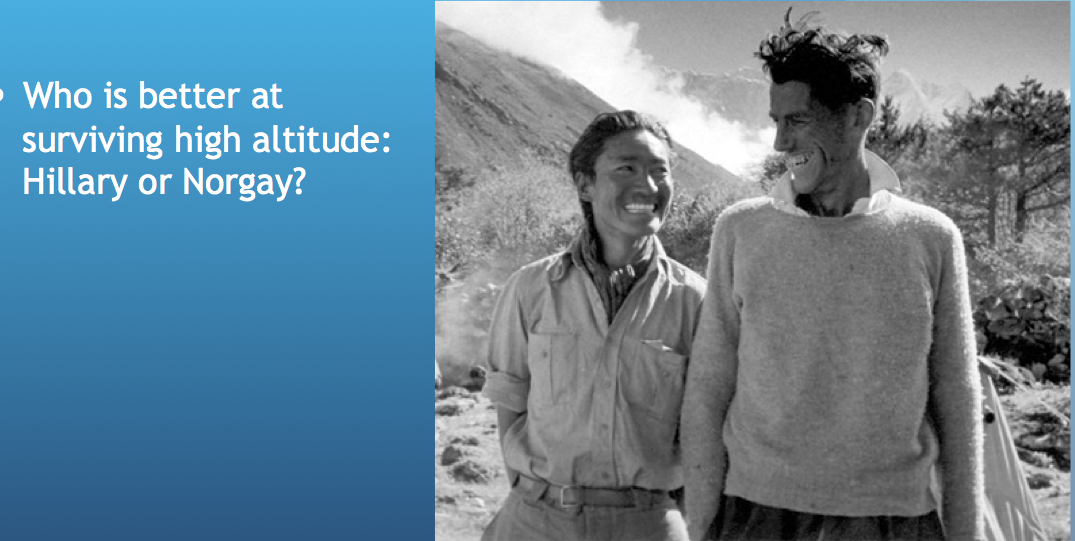 We will discuss the evolutionary biology of high altitude peoples of the Andes, Himalayas, and Ethiopian Plateau. For discussion: How might gene-environment mismatch account for acute mountain sickness in Europeans? How many generations does it take to evolve solutions to the problem of living in a high altitude environment?