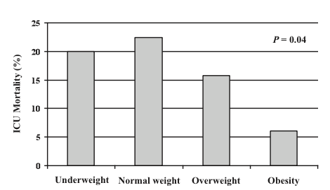A study by Wurzinger and colleagues that was published in 2010 pointed to a survival benefit for larger people with greater BMI who have septic shock. Interestingly normal weight people had the highest mortality in this series of 301 septic patients. Overweight and obese subjects fared the best: